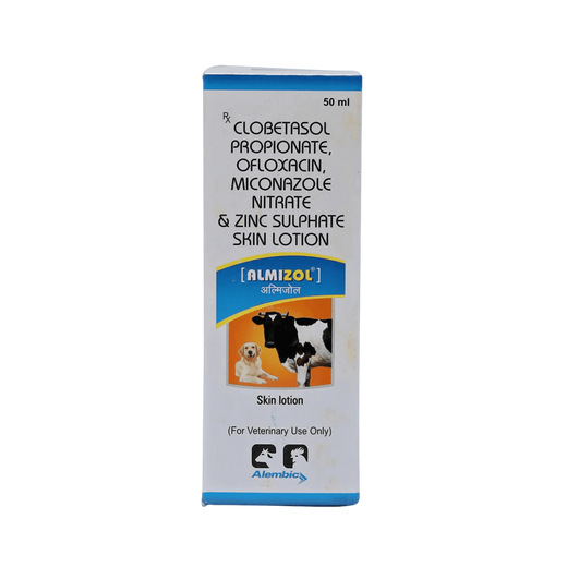 Apply ALMIZOL LOTION as directed by a veterinarian. Dosage may vary based on the species and severity of the condition. Animeal emphasizes the importance of professional consultation to ensure the best outcomes for your pets.