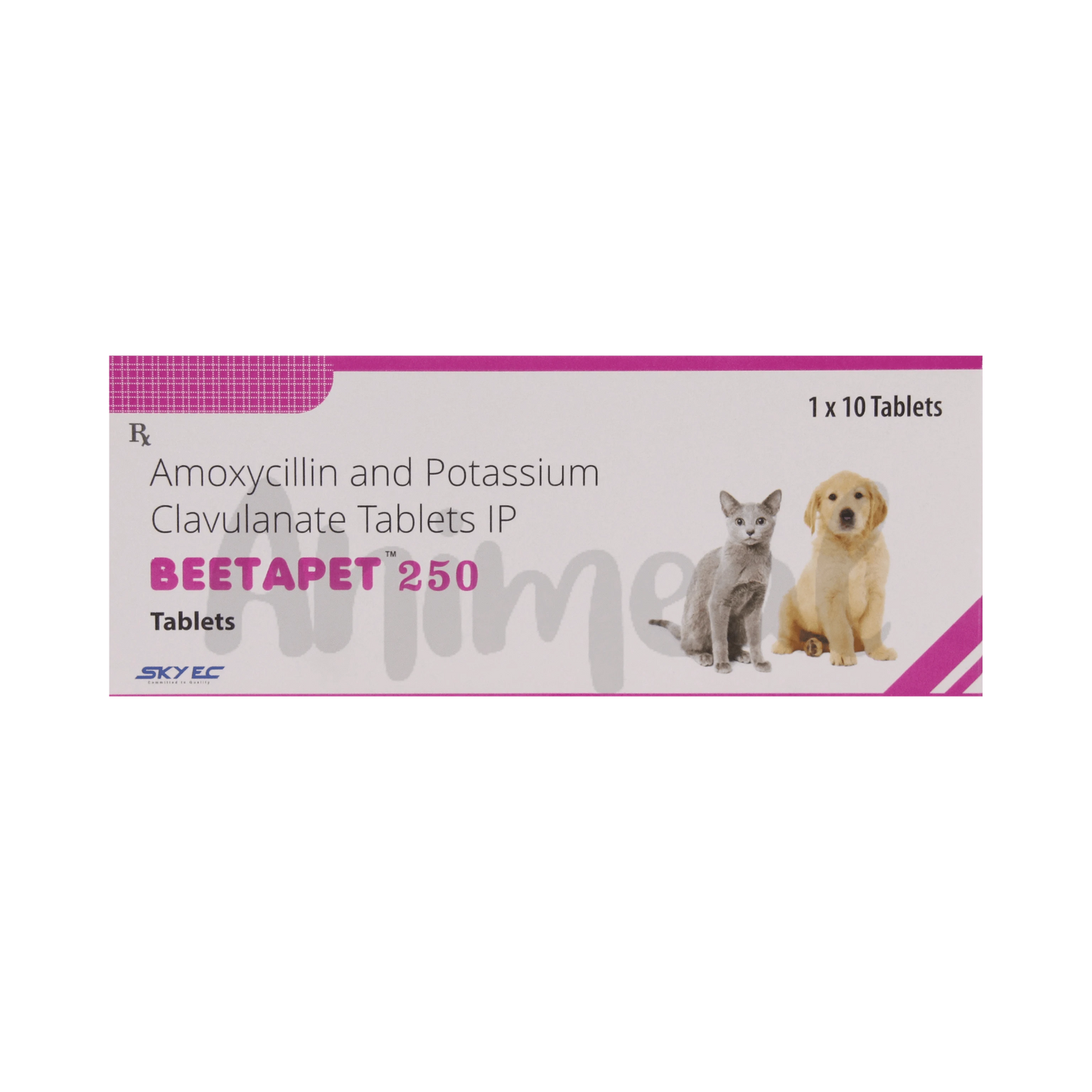 BEETAPET 250MG TABLET, offered by Animeal, is a premium veterinary medicine designed specifically for dogs and cats. This product falls under the anti-biotic category and is classified as a Potentiated Aminopenicillin Antibiotic. It is composed of 200 mg of Amoxicillin trihydrate and 50 mg of Potassium clavulanate, forming a combination that effectively combats a wide range of bacterial infections in pets, thus promoting their health and recovery.