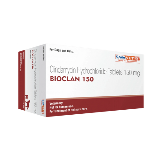 BIOCLAN 150 TABLET, manufactured by SAVA VET, is a premium skin and coat care medication for dogs and cats. Formulated with Clindamycin, this antibiotic medicine is adept at treating a range of bacterial infections, particularly those affecting the skin and dental regions. Animeal, committed to the welfare of pets, offers this effective solution for pet owners and veterinarians, ensuring the best possible care for our furry friends.