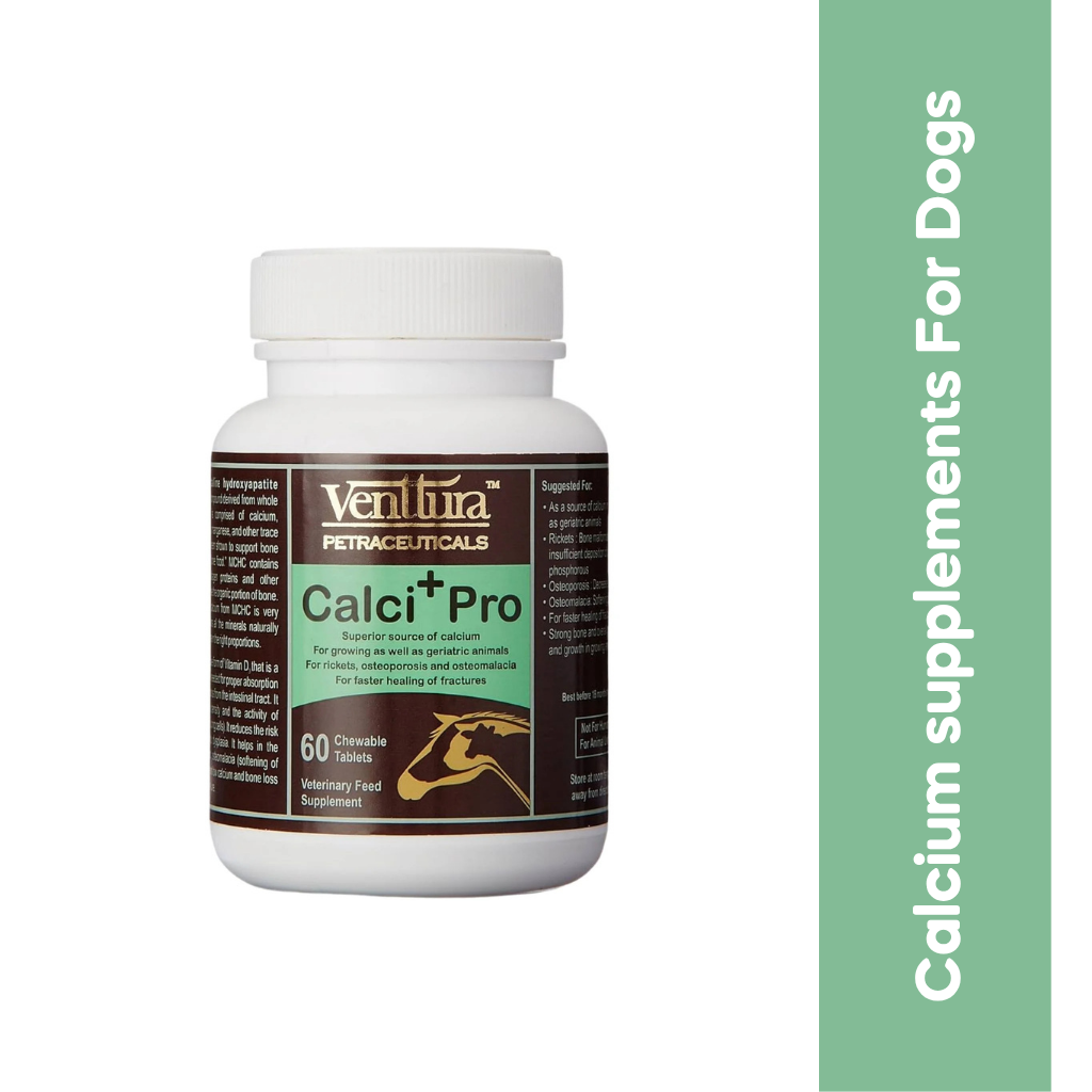 Introducing CALCI PRO PLUS TABLET, a premium calcium supplement designed specifically for dogs. This advanced formula, brought to you by VENTTURA, is a powerhouse of essential nutrients aimed at promoting optimal bone health and overall wellbeing in your furry friend. Ideal for dogs of all breeds and ages, CALCI PRO PLUS TABLET is a must-have addition to your pet's diet, ensuring they stay strong, active, and healthy.