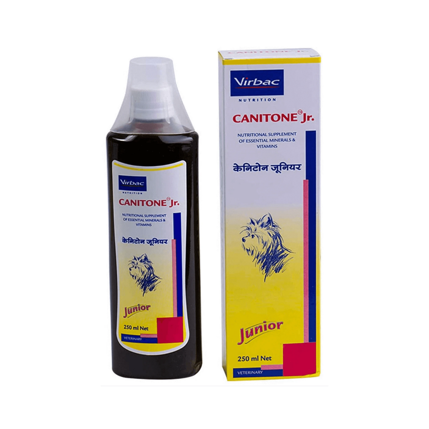 Discover the nurturing power of CANITONE JUNIOR Syrup, a premium calcium supplement tailored for the unique needs of growing puppies. Crafted by VIRBAC, this supplement is a blend of essential nutrients, including calcium, phosphorus, and vital vitamins, to ensure your puppy's optimal development. Perfect for all breeds, CANITONE JUNIOR Syrup supports strong bones, robust immune function, and overall health during the critical early stages of life. With its delightful strawberry flavor, it's not just a supplement but a treat your puppy will love. Animeal proudly presents this high-quality product, embodying our commitment to enhancing the well-being and vitality of your cherished pets.