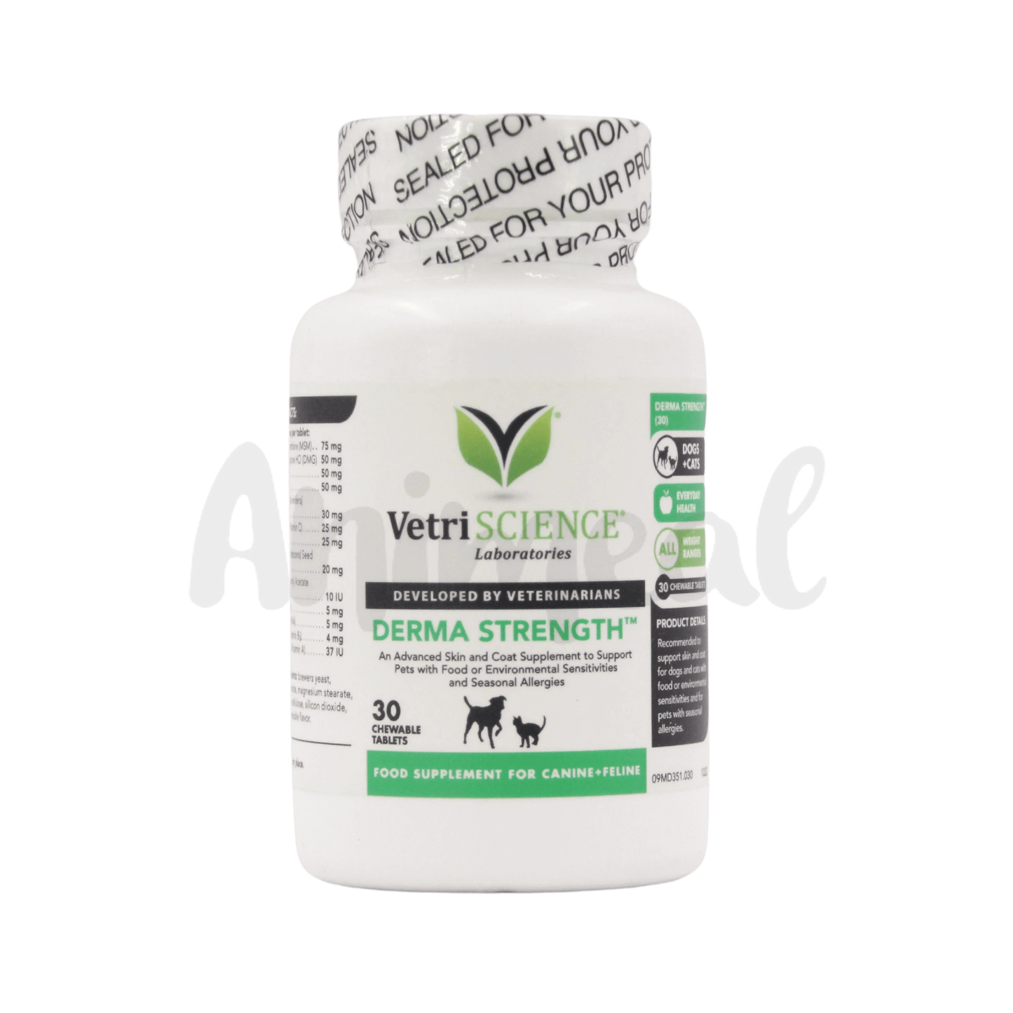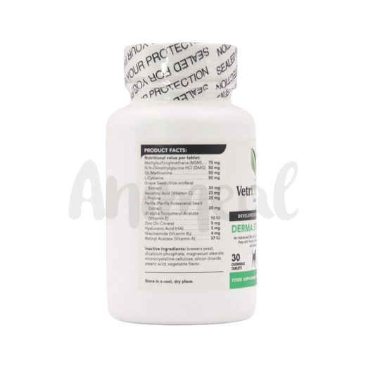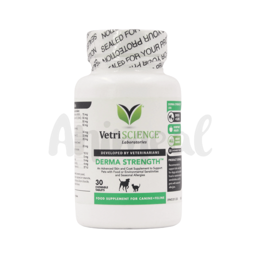 VETRISCIENCE, the manufacturer of DERMA STRENGTH TABLET, is renowned for its commitment to high-quality pet supplements. Their products meet Animeal's stringent standards for pet health and wellness.