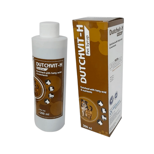Skin and Coat Health: The blend of vitamins and Omega fatty acids in DUTCHVIT H PET SYRUP ensures a shiny coat and healthy skin.
