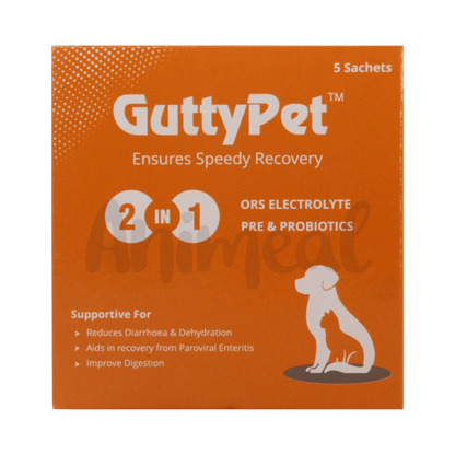 GUTTYPET POWDER is a comprehensive solution for your pet's intestinal health. It aids in maintaining a balanced gut flora, ensuring optimal nutrient absorption, and supports overall digestive wellness. This aligns with Animeal’s mission to enhance pet health and happiness.