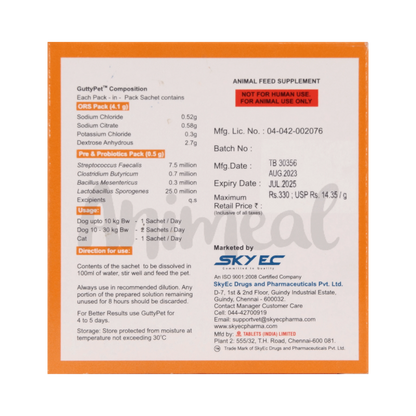 GUTTYPET POWDER, a premium supplement from SKY EC, is specially formulated for the digestive health of your beloved pets, dogs and cats. This powder supplement is an essential addition to your pet's diet, ensuring a healthy gastrointestinal tract. Animeal is proud to offer GUTTYPET POWDER, aligning with our commitment to providing top-quality pet health products.