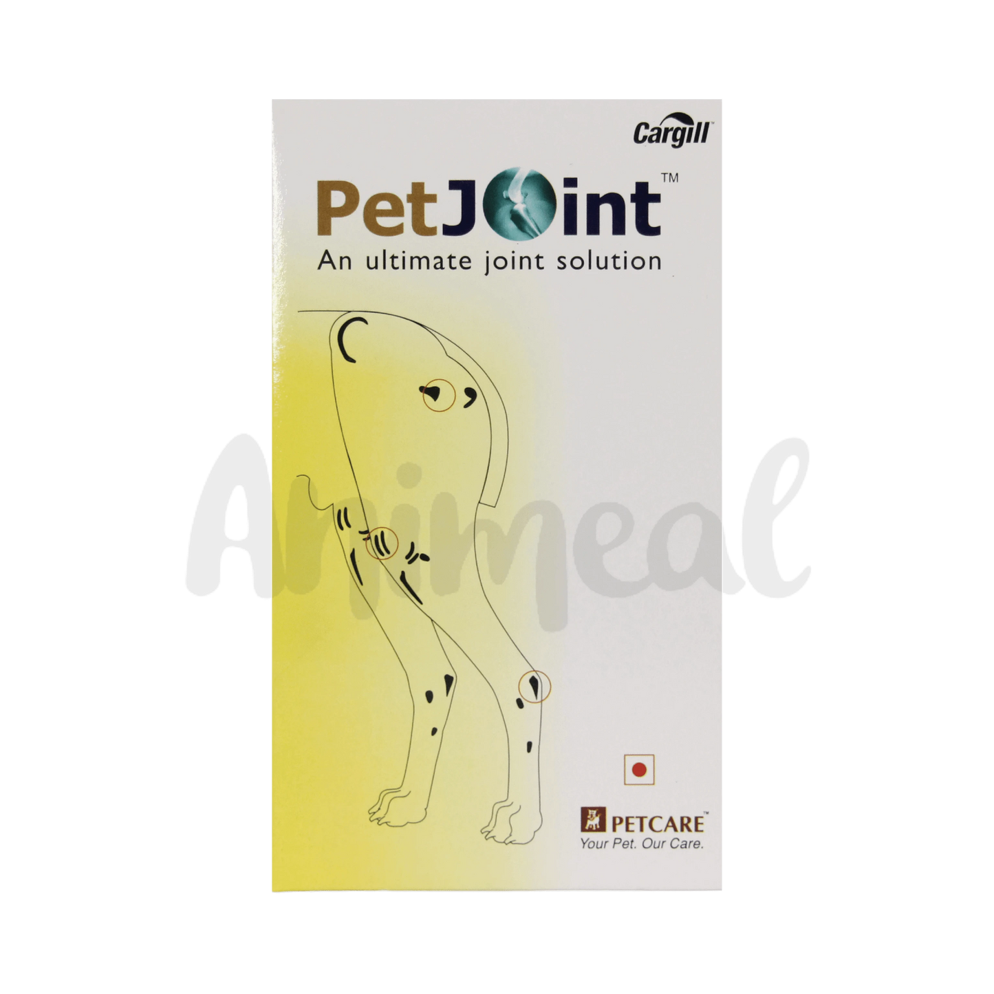 PET JOINT TABLET, a specialized product in the Hip and Joint Care category, is an essential nutritional supplement for managing osteoarthritis and joint disorders in both dogs and cats. Manufactured by PETCARE, this tablet is formulated to support the health and strength of joints in young animals, assist in the management of wear and tear of cartilage, and aid in recovery post-fracture or joint surgeries. Animeal is committed to offering high-quality veterinary medicines like PET JOINT TABLET to ensure the well-being of your pets.