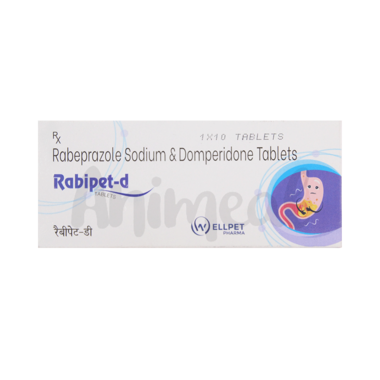 Designed specifically for pet animals, the RABIPET-D TABLET addresses various digestive issues, providing relief and improving your pet's quality of life. It effectively tackles common problems such as indigestion, acid reflux, and gastrointestinal discomfort. By incorporating this tablet into your pet's routine, you can restore their digestive health and enhance their vitality.